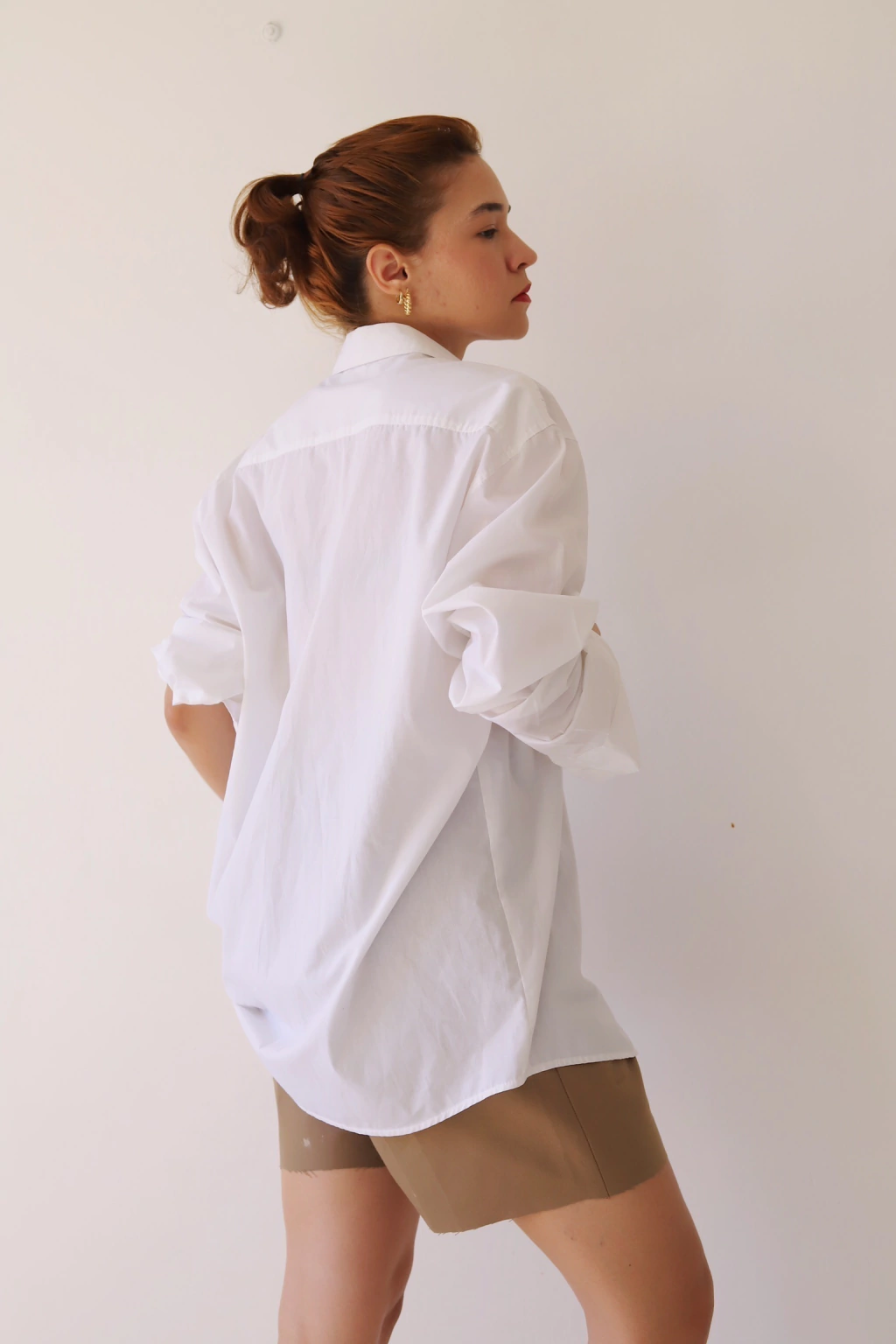Camisa social com manga longa e dois bolsos na frente. Possui gola estruturada e tecido de algodão fino.