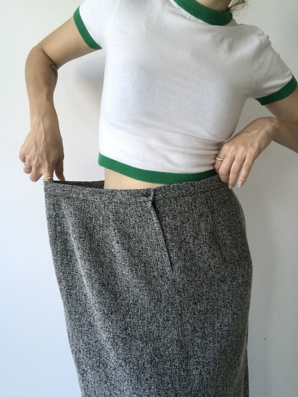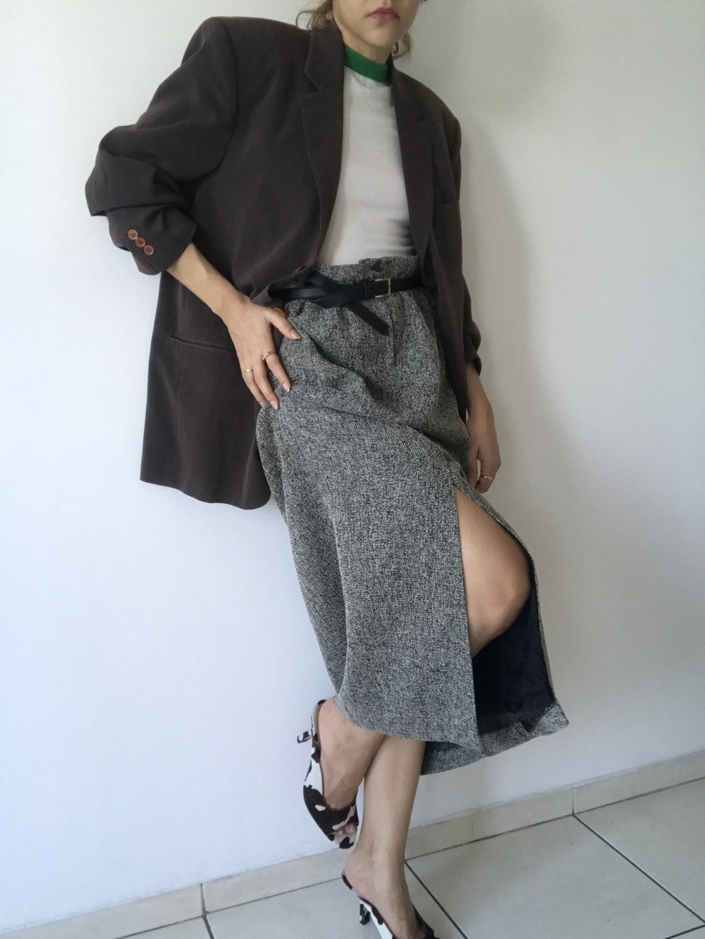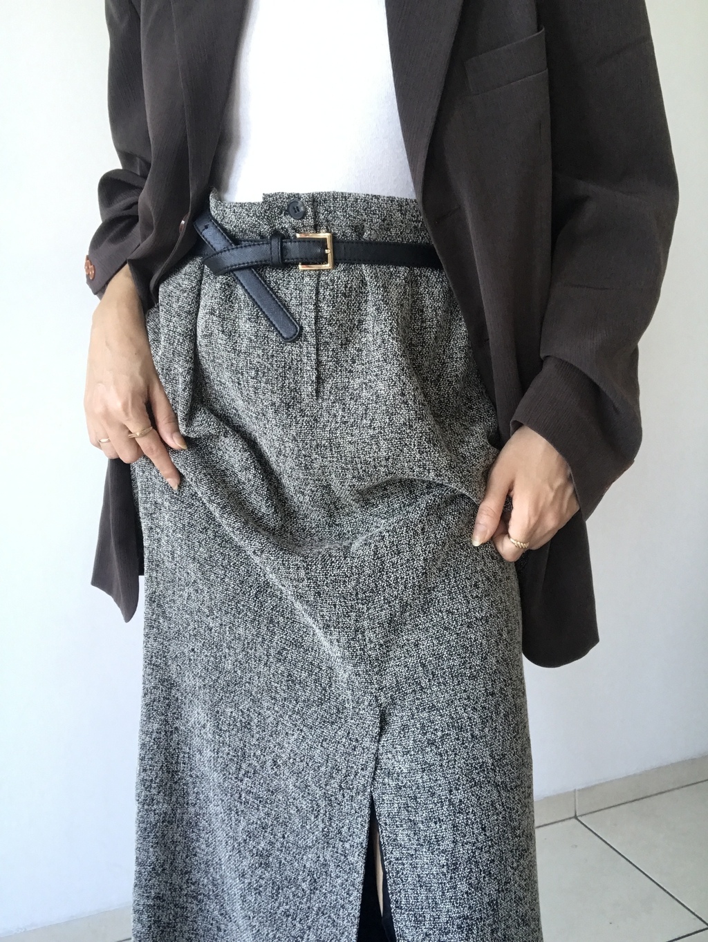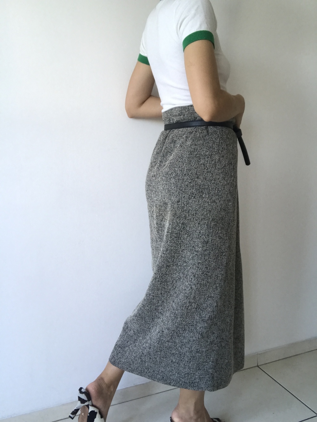 Saia longa Pierre Cardin, cintura alta, com fenda, zíper e botão. Tecido de poliéster com viscose e forro de acetato.