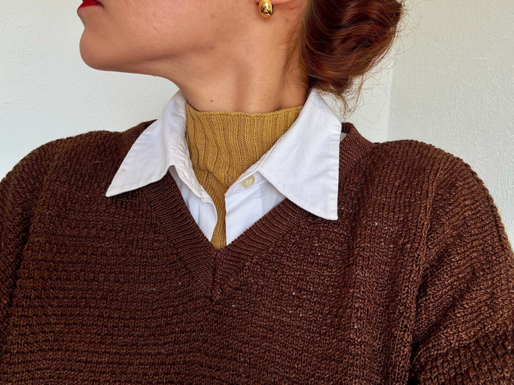 Suéter em tricô com gola V, super confortável, com manga longa.